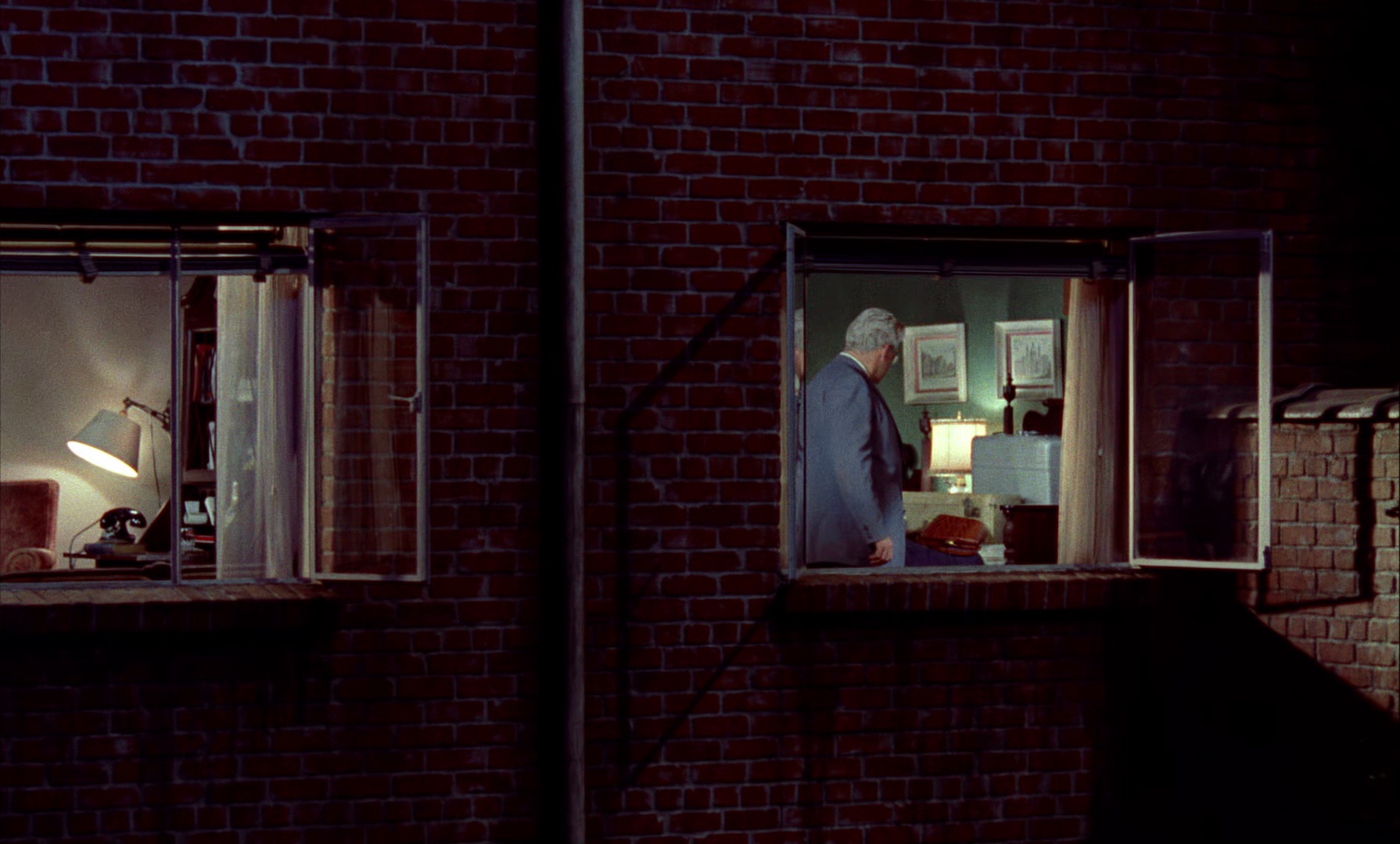 摄影师杰弗里斯(詹姆斯·斯图尔特 饰)因站在赛车道中间拍摄,断了左腿,只得在家静养七周。除了保险公司的护士斯特拉(西尔玛·里特 饰)和女友丽莎·卡罗尔·弗里蒙特(格雷斯·凯利 饰)每日前来照料,百无聊赖的杰弗里斯只能在窗前闲看邻居们的日常生活以打发时间。对面公寓的二楼住着人造珠宝推销员拉尔斯·托瓦尔德(雷蒙德·伯尔 饰)及妻子安娜(艾琳·温斯顿 饰),夫妻之间争吵不断。一个雨夜,杰弗里斯看到拉尔斯提着箱子外出数次。次日,杰弗里斯又看到拉尔斯用报纸包裹一把锯和一把刀。杰弗里斯起了疑心,他怀疑拉尔斯杀害了安娜并分尸抛弃。然而,杰弗里斯并未目击案发过程,也未见到尸体。那么真相究竟如何呢?杰弗里斯的推测只是他的臆想吗?为了证实他的推测,杰弗里斯要如何寻找证据呢?