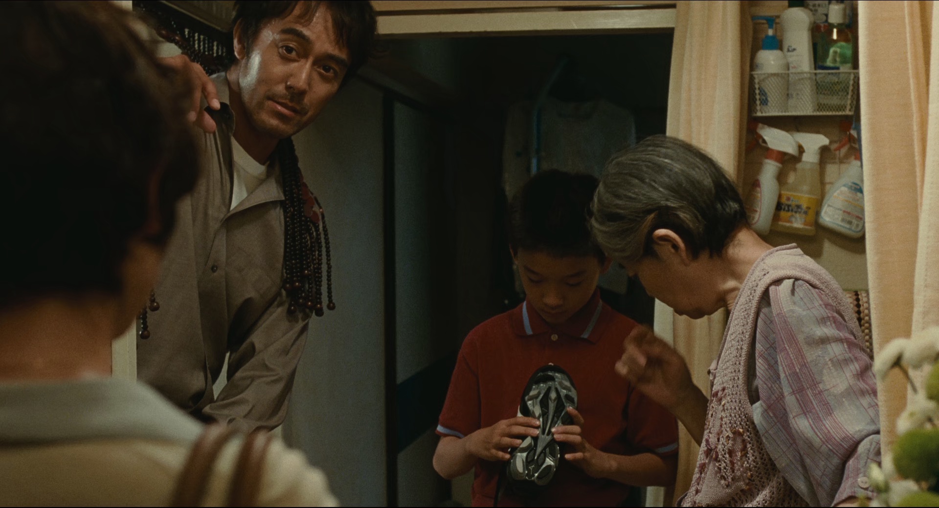 邋遢潦倒的中年大叔筱田良多(阿部宽 饰)是一名私家侦探,早年间他作为作家出道,然而自从处女作之后就再也没有令人称道的作品问世。他满腹牢骚,自视清高,绝不愿为了钱去创作没有“灵魂”的作品。现实生活中处处为钱发愁,拿到钱后又转瞬扔进赌场,全然没有指望。母亲淑子(树木希林 饰)独自住在团地,在老人家的眼里,再差劲的儿子也有别人无可比拟的优点。良多原本拥有美满的家庭,只不过前妻白石响子(真木阳子 饰)再也无法忍受他的作为,离婚后带着儿子真吾(吉泽太阳 饰)另外过活。好不容易与儿子见上一面,良多父子以及随后赶到的响子在淑子家中团聚。台风袭来,他们被迫留在充满着往昔回忆的奶奶家过夜。 喧闹却又平静的夜晚,有些事情悄然改变……