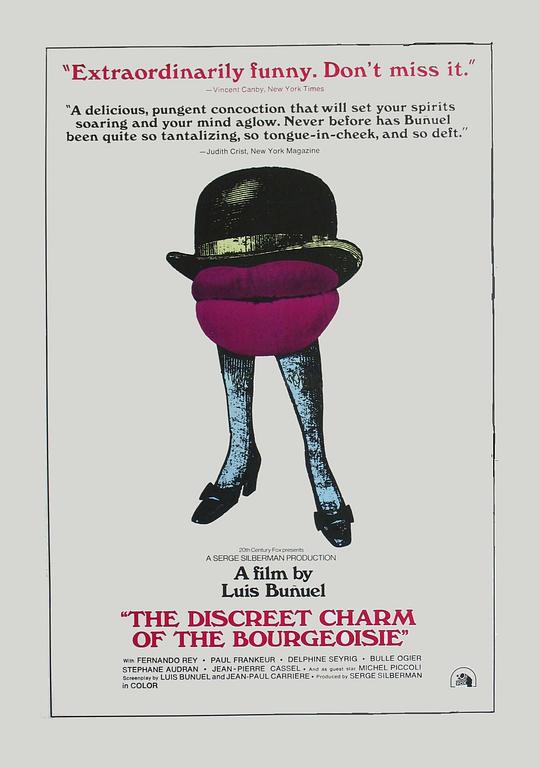 ◎译 名 中产阶级拘谨的魅力(港 / 台) / 中产阶级的审慎魅力 / 中产阶级的诱惑 / 资产阶级隐秘的魅力 / 资产阶级的魅力 / The Discreet Charm of the Bourgeoisie
