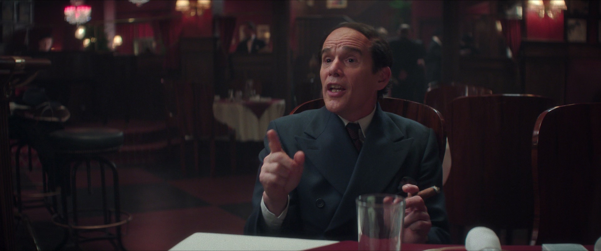 劳伦兹曾是百老汇作词家第一把交椅,却在与理查德拆伙后事业跌落低谷。前搭档新作的首演之夜,他故作大方献上祝福,新仇旧恨交织下,终究不欢而散;他转向忘年好友伊丽莎白寻找慰藉,又不禁怀疑友达以上的关系是否只是自作多情。偌大派对就像如今的百老汇,早已没他的容身之处。过了今晚,美国音乐剧的黄金年代就要展开,他的盛世却再也回不来,当最后一曲〈蓝月〉响起,即便成了终曲,也要忘情歌颂。