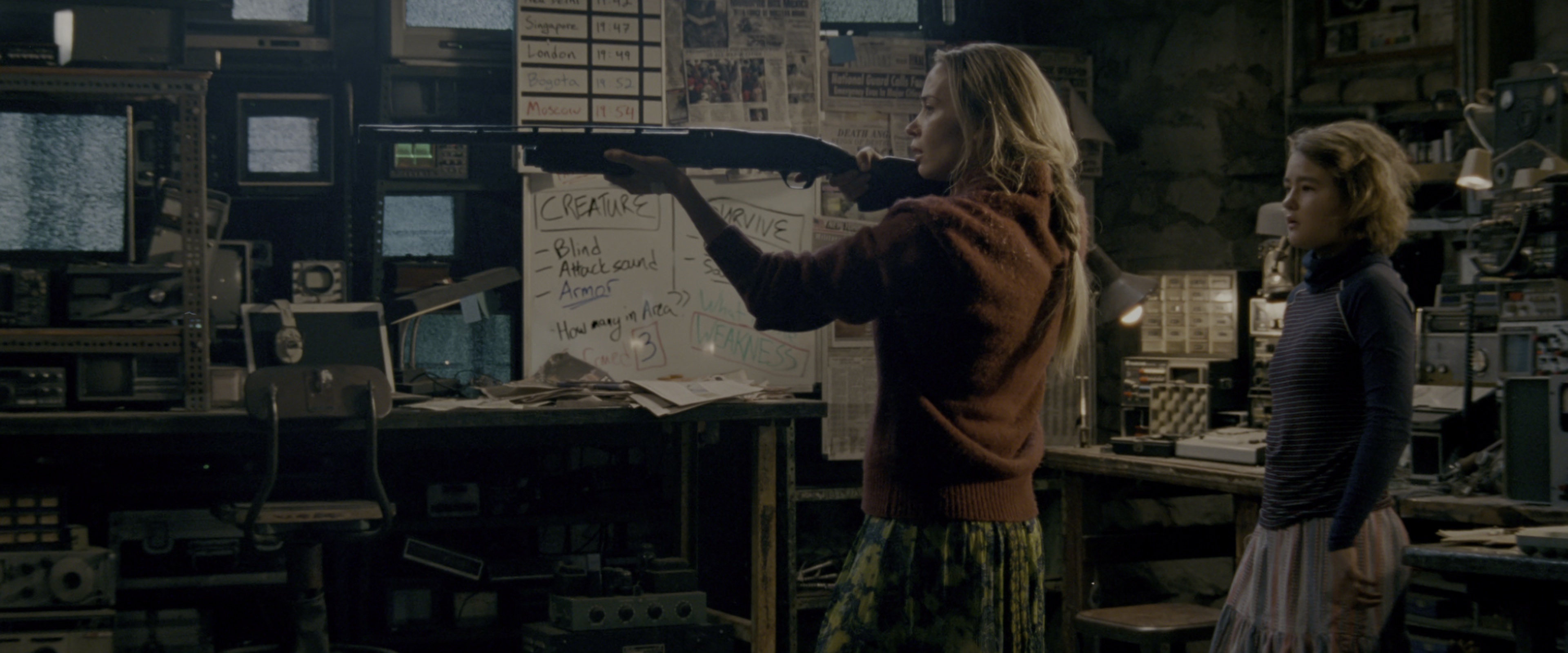 一个大规模的入侵行动发生,让地球几乎全灭,幸存的这一家人过着安静无声的生活,一发出声音就会被怪物抓走。《寂静之地》中的家庭必须时时保持安静,这一家人必须搞清楚哪些声音可以发出,哪些不行。父亲铺了沙子路来消音,全家人必须使用手语,还有用来沟通的照明系统…等,才能避免可怕的事情发生,因为猎杀他们的怪物无所不在,这是真正的挑战,他们必须克服生死难关,想尽办法活下去。 保持安静是生存唯一法则,它们无法听到你,就无法追捕你。